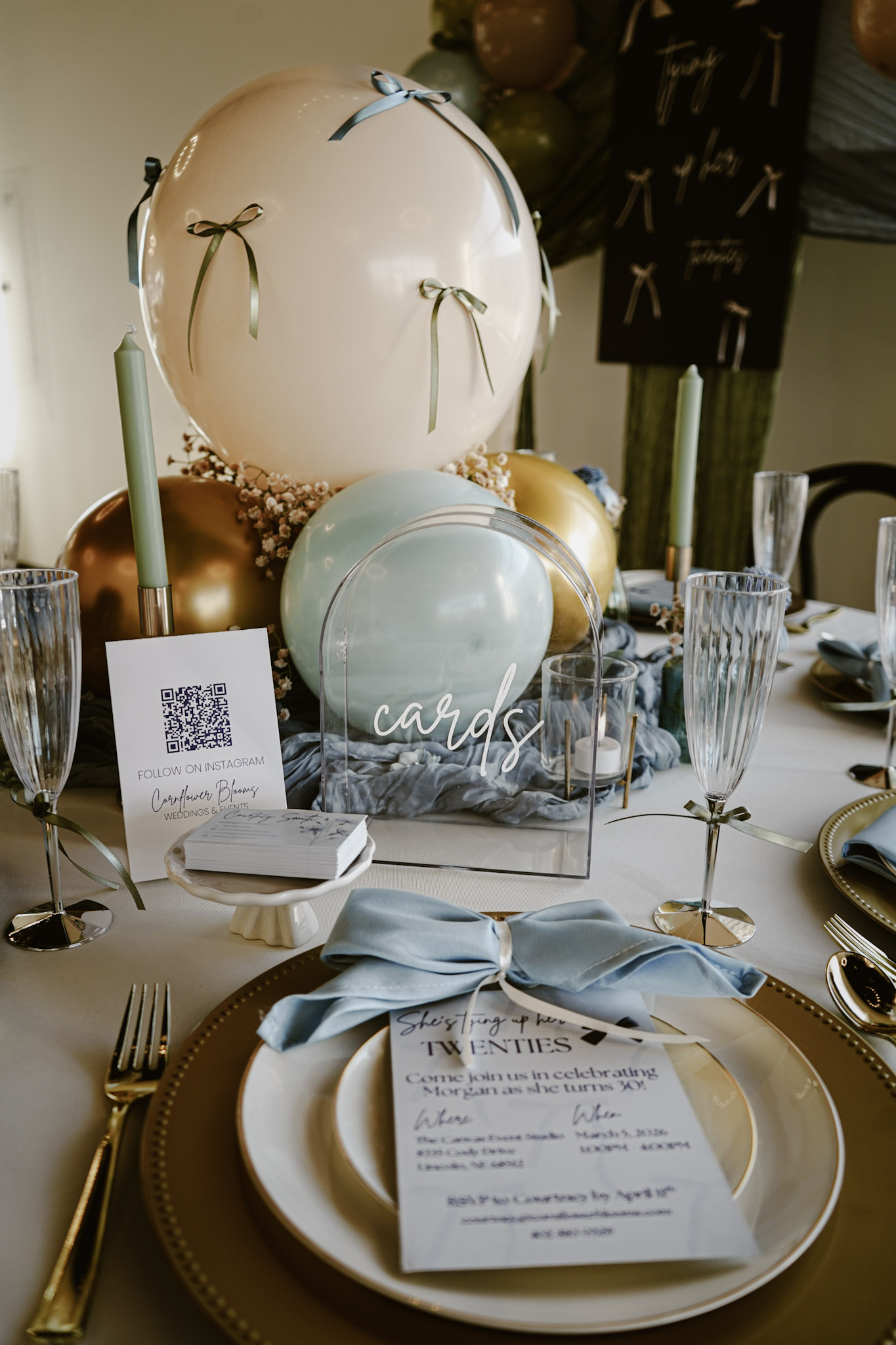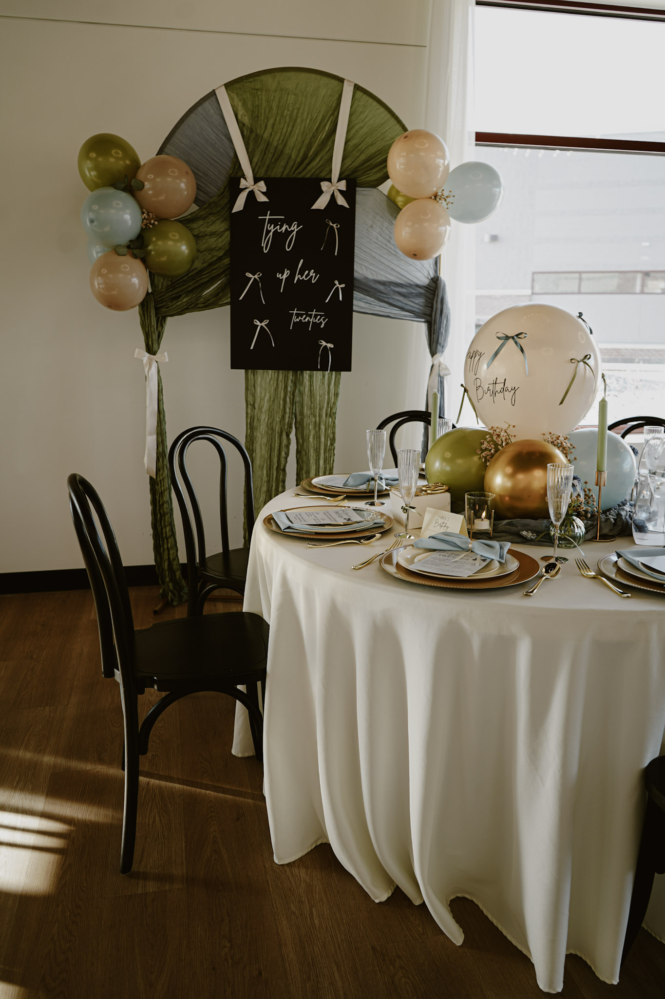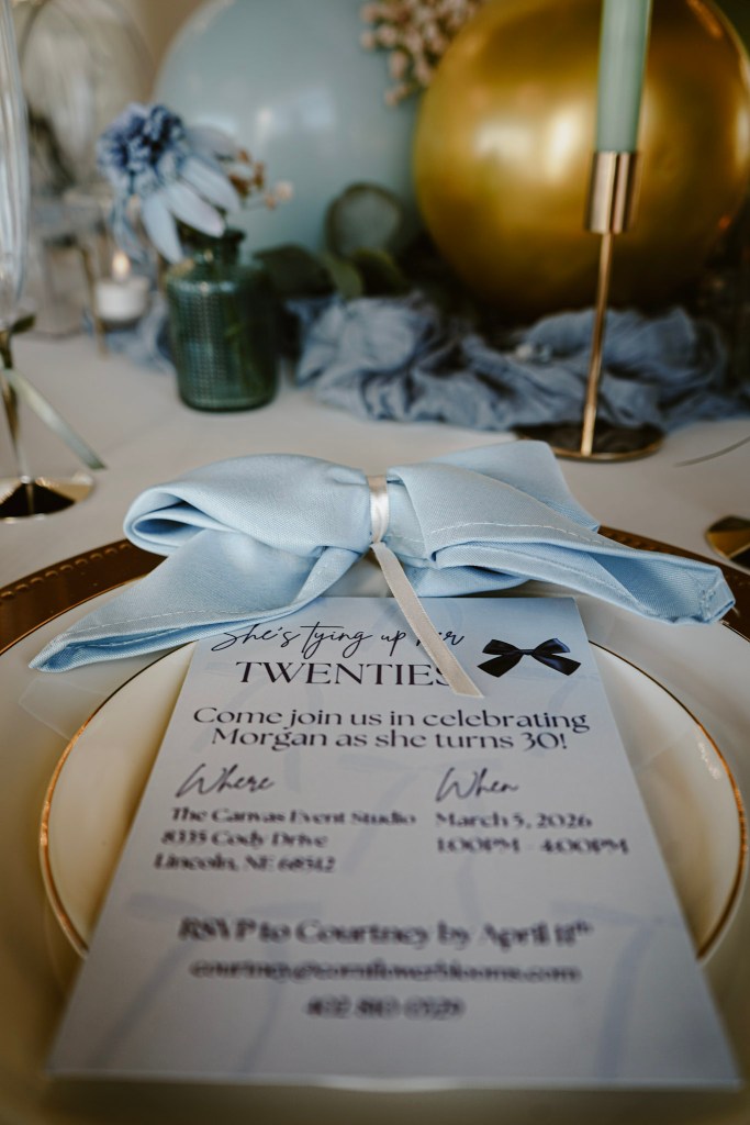 We’ve now determined what age we were going with. Our next step is picking a theme. I have been OBSESSED with bows lately ๐ Not wearing them necessarily (though I have!) but as a decor item. Thanks to social media and Pinterest, “Tying up her Twenties!” was immediately what we went for.